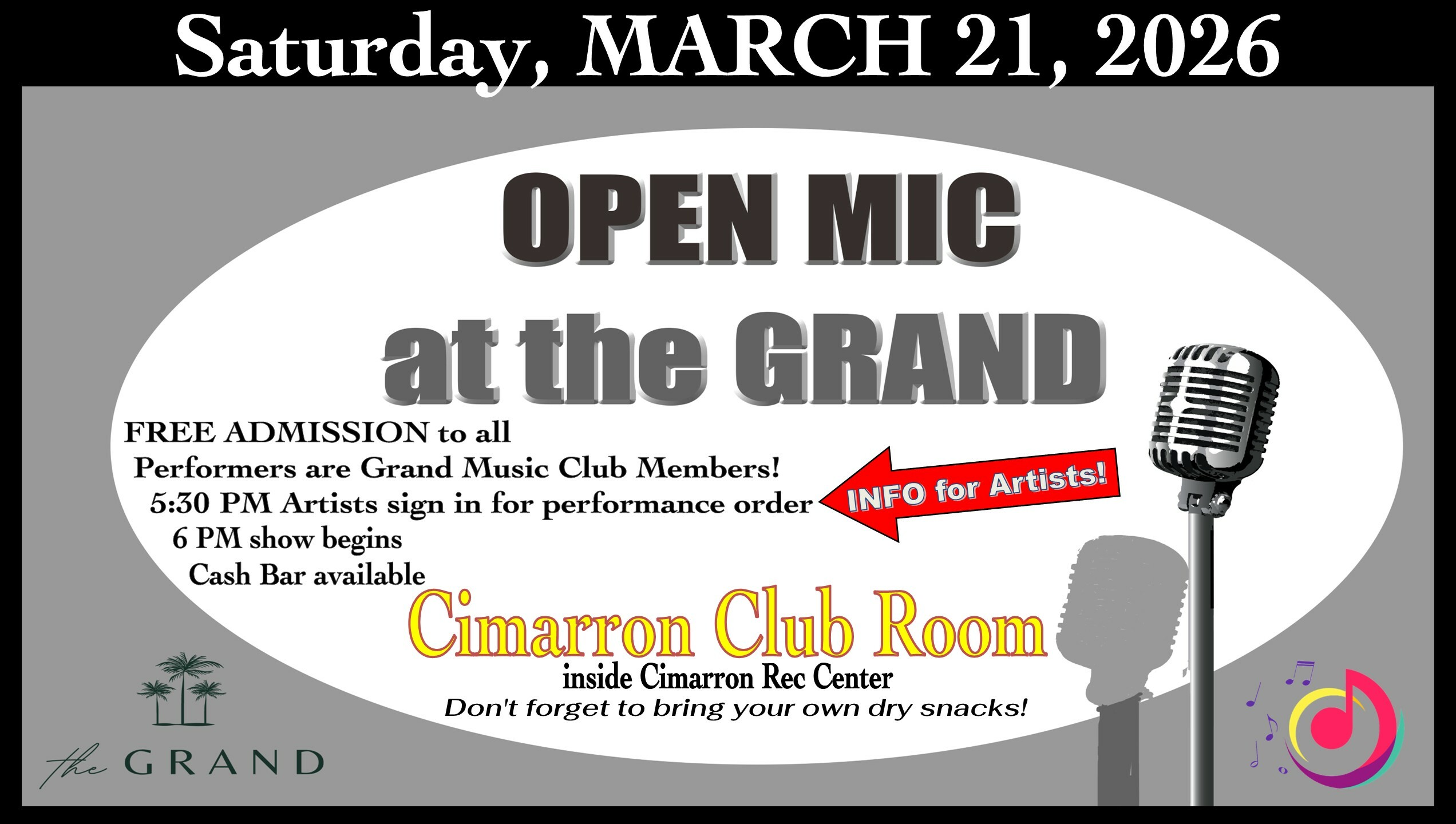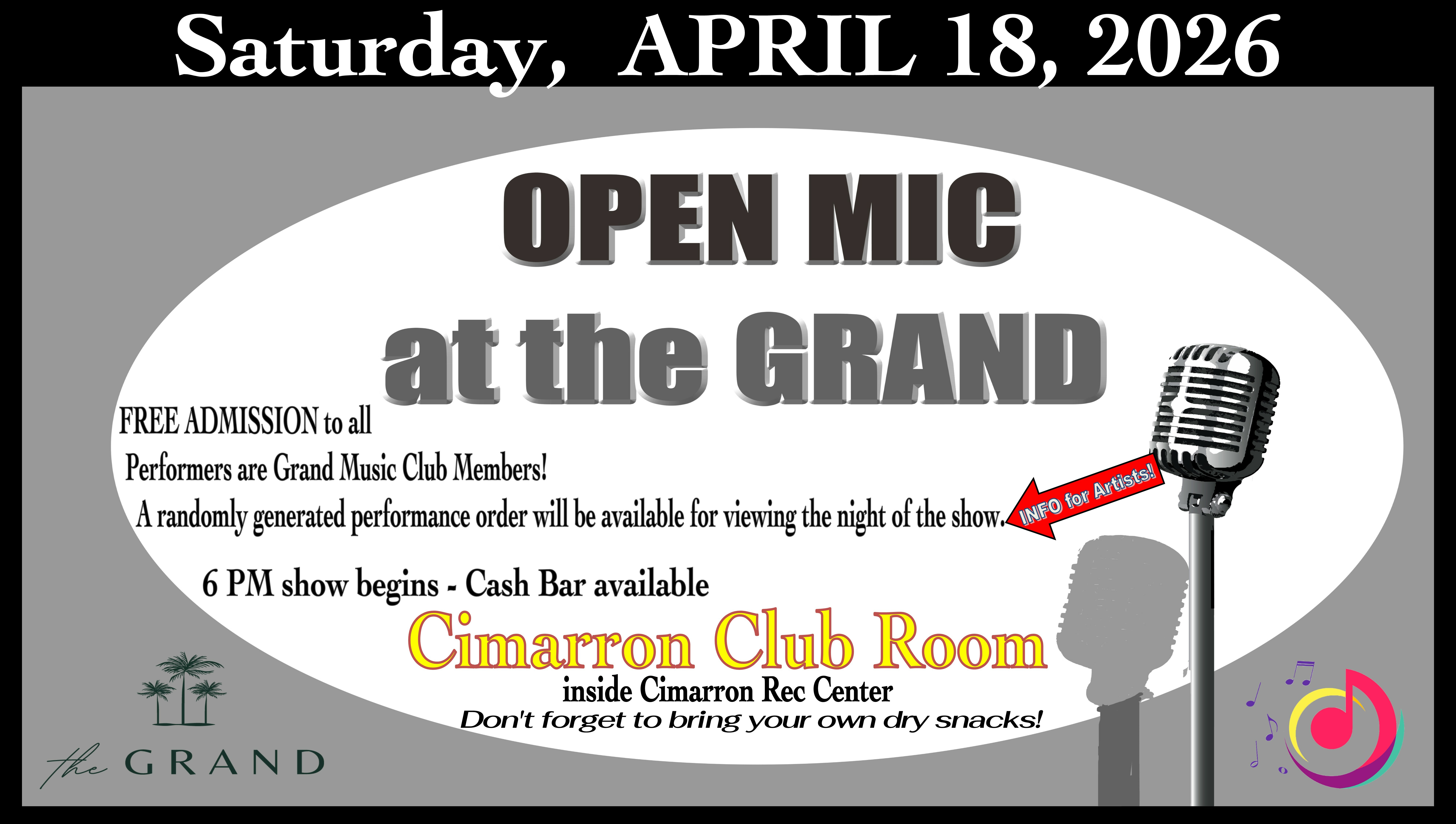 - Live At Cimarron shows once a month, August through May